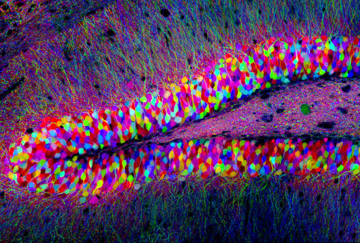 Brainbow is a process by which individual neurons in the brain can be distinguished from neighboring neurons using fluorescent proteins. By randomly expressing different ratios of red, green, and blue derivatives of green fluorescent protein in individual neurons, it is possible to flag each neuron with a distinctive color. This process has been a major contribution to the field of neural connectomics.